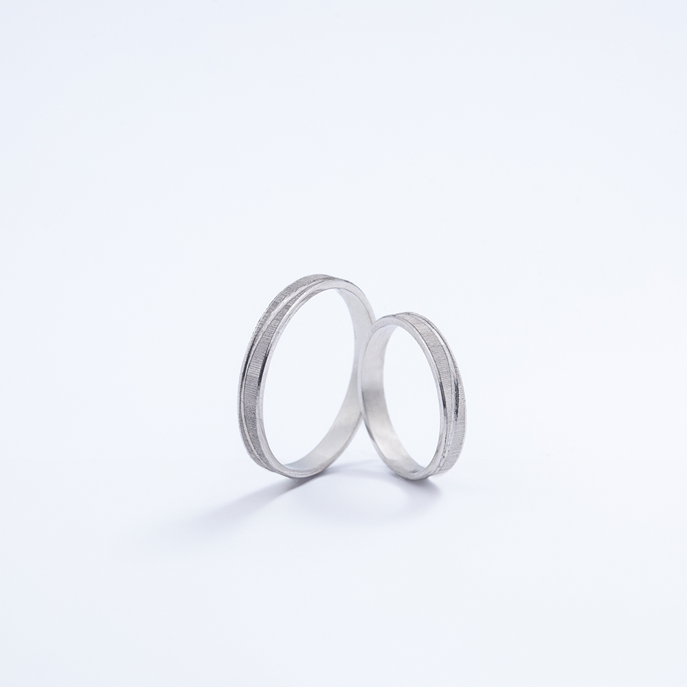 Ove burme odišu savremenim dizajnom i suptilnim kontrastom tekstura. Peskirana površina pruža mat efekat, dok dijagonalna polirana linija unosi pokret, izražavajući dinamiku i energiju ljubavi. Njihova precizna izrada i čvrsta forma garantuju dugotrajnost i udobnost, dok elegantan dizajn čini ove burme izborom modernih parova koji žele nešto drugačije, a ipak bezvremensko.