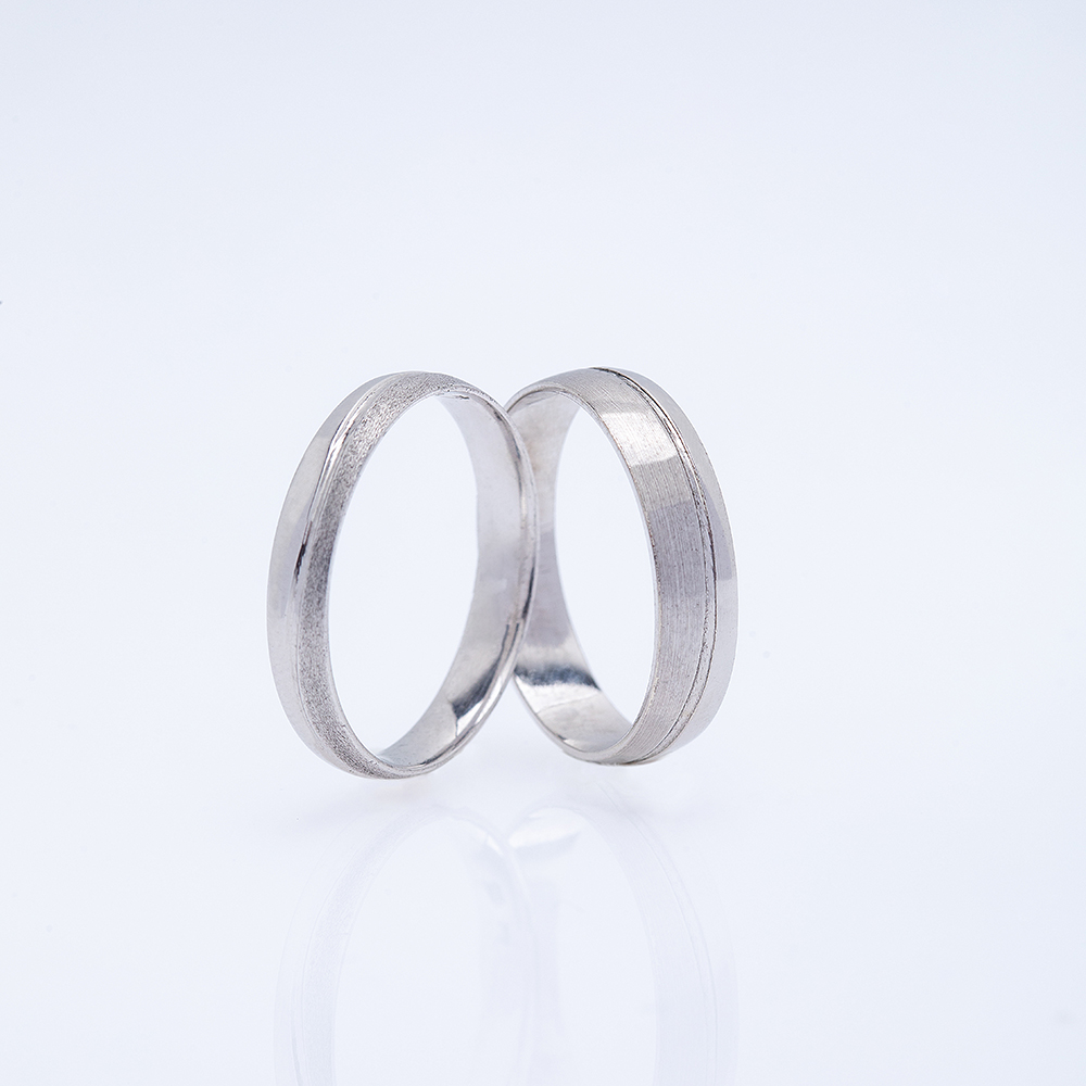 Burme od belog zlata sa kombinacijom mat i polirane teksture izrađene su od 14k belog zlata i predstavljaju spoj klasične forme i savremene estetike. Površinom prolazi tanka, urezana linija koja razdvaja dve različite teksture – jedna strana je matirana, dok druga blista u visokom sjaju. Ovaj kontrast stvara efekat svetlosti i dubine, simbolizujući sklad između različitosti u ljubavi. Muška burma je šira i izraženijeg kontrasta, dok je ženska uža i delikatnija, sa istom pažnjom posvećenom detaljima. Ovaj model odiše elegancijom i svedenom sofisticiranošću, namenjen parovima koji vole minimalizam sa karakterom.