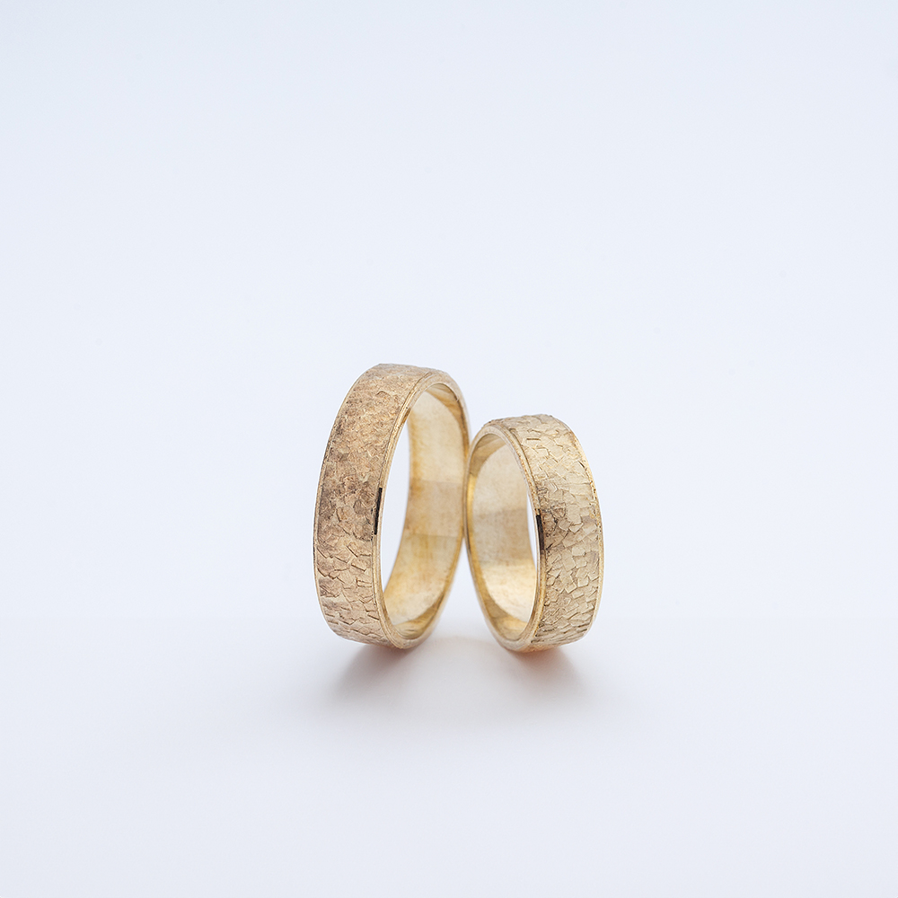 Ove burme su za parove koji vole prirodan, iskren izgled. Hrapava, čekićava površina daje im teksturu i karakter – svaka je malo drugačija, baš kao svaka ljubavna priča. Polirane ivice donose balans i dodaju dozu elegancije.