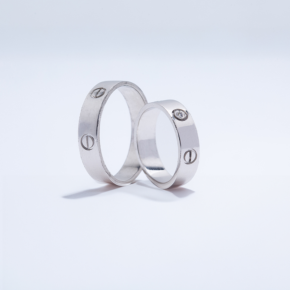 Jednostavne, ali upečatljive burme inspirisane industrijskim stilom. Svaka burma ima dva dekorativna šrafa, dok ženska dodatno sadrži diskretan kamenčić. Minimalistički dizajn sa karakterom.