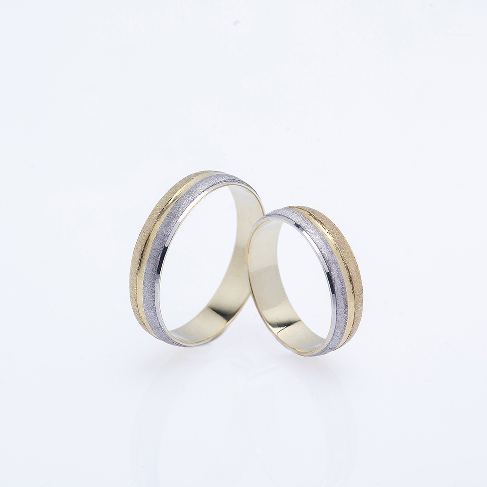 Klasične i elegantne burme koje kombinuju tople i hladne tonove zlata. Peskirana površina daje meku, svilenkastu teksturu, dok glatke zlatne ivice uokviruju ceo prsten i daju mu luksuzan završetak. Savršene za one koji vole uravnotežen spoj tradicije i modernog izgleda.