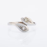 Prsten od belog zlata sa dvostrukim završetkom u obliku listova sa dijamantima.
