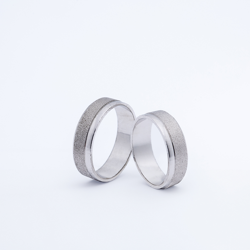 Suptilan dizajn u kojem dominira elegantna linija sjaja na mat osnovi belog zlata. Ovaj model odiše modernim minimalizmom i preciznošću, idealan za parove koji žele da izraze sklad i jednostavnu sofisticiranost.