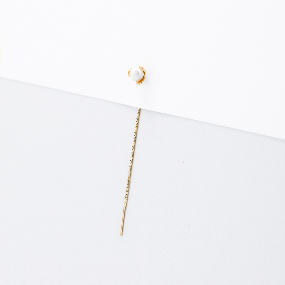 Biser okružen zlatnim laticama stvara utisak cveta koji se otvara na svetlosti. Motiv stoji uz samo uvo, dok se ispod spušta tanka lančana nit koja blago njiše pri pokretu. Ove minđuše unose toplinu i ženstvenost u svaki stil – savršene za romantične duše i sve koji vole detalje sa karakterom.