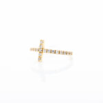 Zlatni prsten od 14K žutog zlata sa pažljivo urezanim dijamantima raspoređenim u obliku krsta.