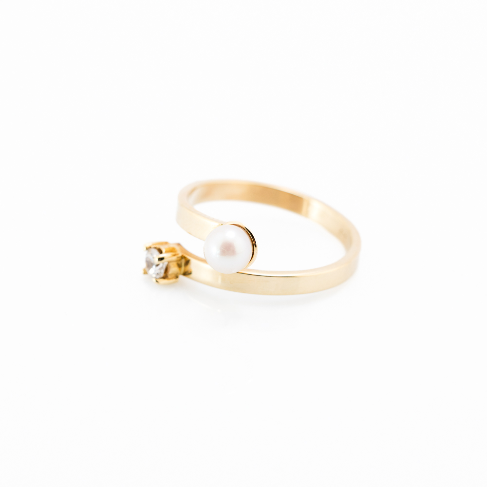 Zlatni prsten sa otvorenim krajevima – biser i dijamant